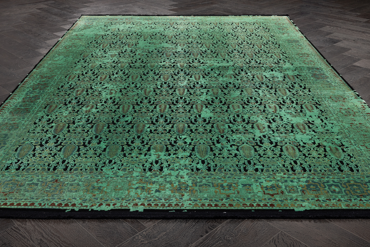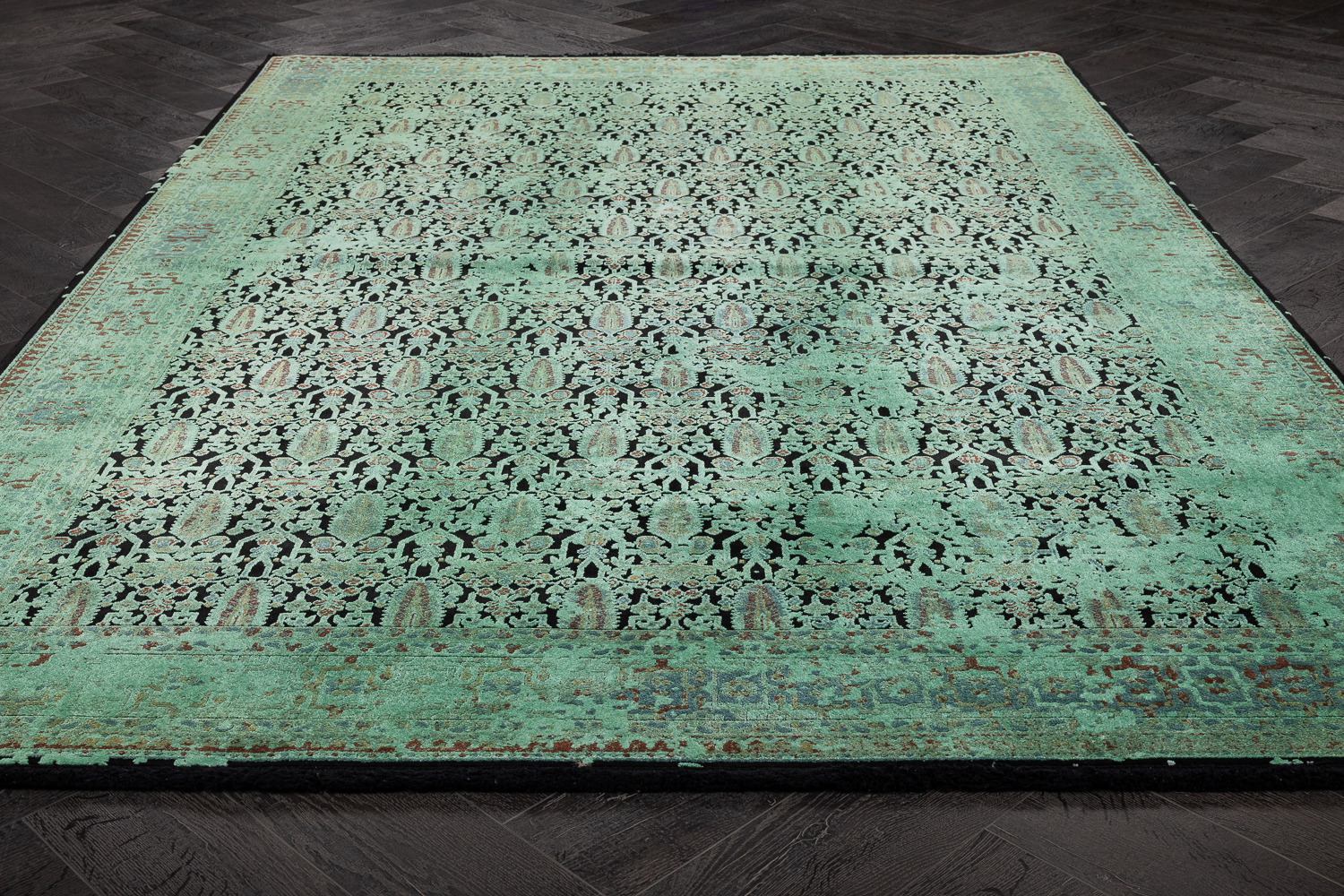 Коллекция,которая вывела бренд Ян Кат на пъедестал победителей и первопроходцев коврового производства и произвела революцию в мире ковров, это Стёртое наследие(Erased Heritage).Плотность ковра 150узлов/кв.дюйм,в конце процесса вязки изделия обжигаются огнем,достигая той неповторимости,из-за которой они считаются уникальными и эксклюзивными. В нашем салоне представлено несколько моделей этого ряда, этот ковёр в наличии 2,5*3,1м.ПРОДАН, доступен под заказ.