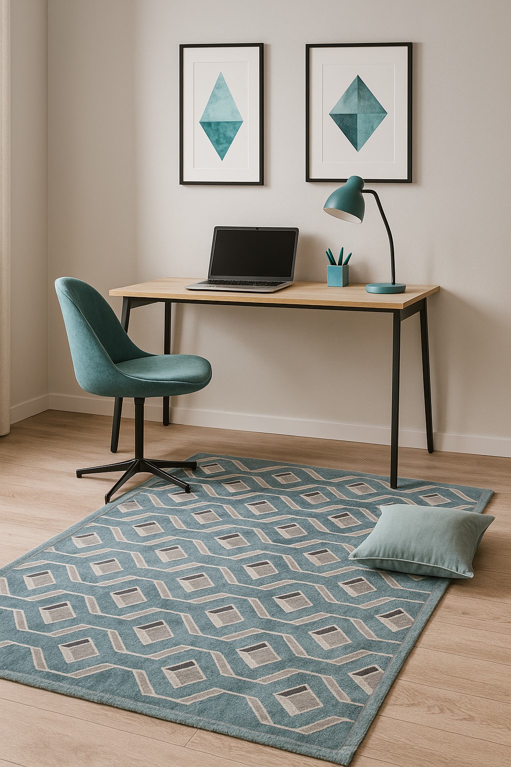 Шерстяной ковер с геометрическим орнаментом, цвета: серо-голубой, пучковая набивка пистолетом( тафтинг), клеевая основа подложки, в наличии размер 1,6*2,6м.