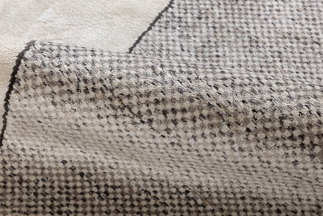 Ковер MILANO CASA с оригинальным графическим рисунком, выполненный из плотных сочетаний бамбукового шёлка и акрила, удачно балансирует между современным дизайном и классической эстетикой. Благородная песочно-жемчужная палитра и мягкий блеск поверхности создают изысканный фон для мебели, при этом текстура остаётся приятной на ощупь и комфортной для ходьбы босиком. Практичное сочетание материалов обеспечивает простоту ухода и долговечность, а плотность 1500000 узлов/м2 и аккуратная фактура создают уют и тепло в жилой комнате или зоне отдыха. Размер 240*300 см