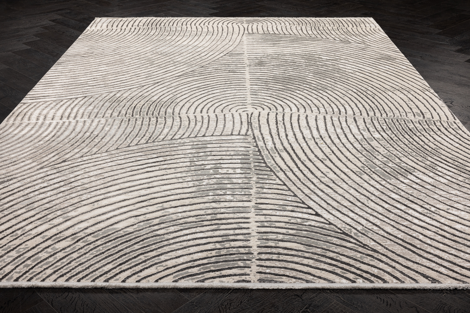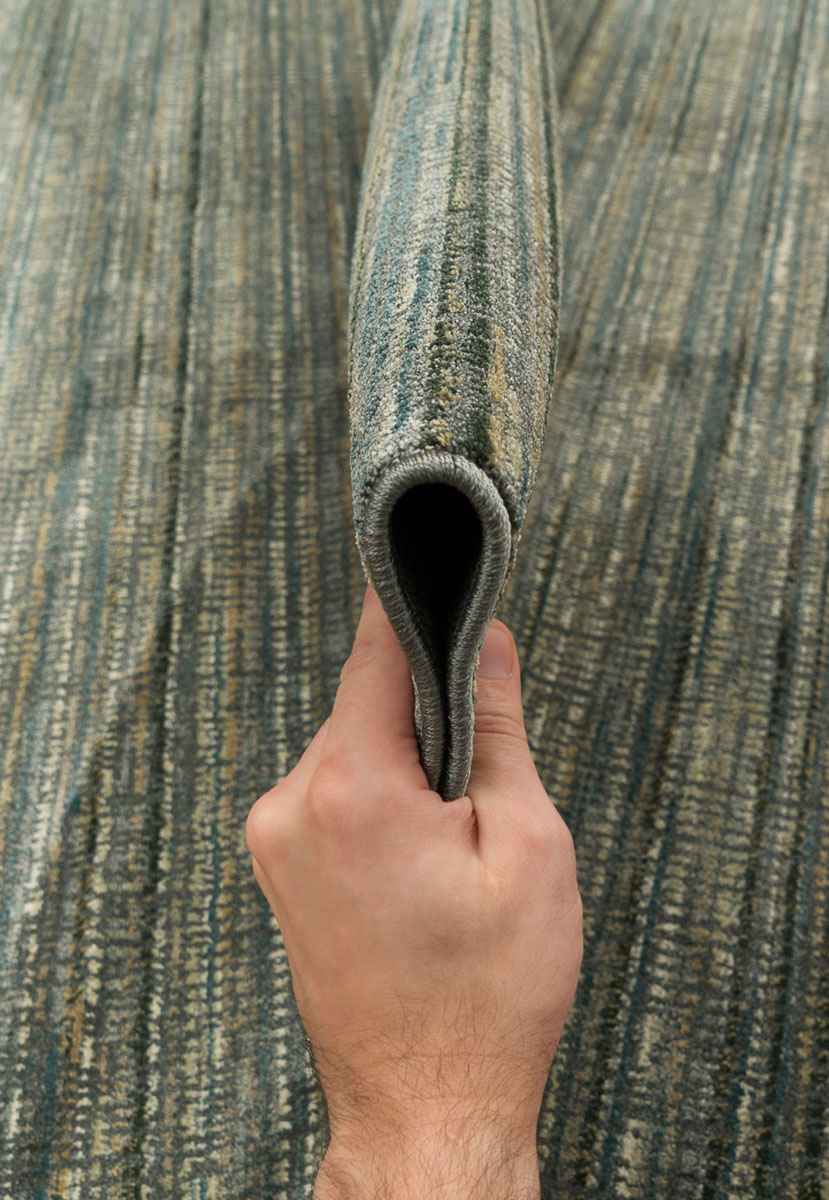 Ковер из бельгийской коллекции Radiant от фабрики Verbatex с ненавязчивым, но интересным современным дизайном. Лёгкий и тонкий, обладает достаточно высокой плотностью плетения в 820 тыс. точек/м2. Невысокий ворс из смеси полиэстера и вискозы вобрал в себя положительные качества обоих материалов. В зависимости от направления ворса и освещения ковёр даёт блики и смотрится местами то светлее, то немного темнее. Ворс мягок, красиво блестит и переливается на солнце, но при этом довольно прочный и долговечный. Толщина ворса 6 мм. Размер 160*230 см
