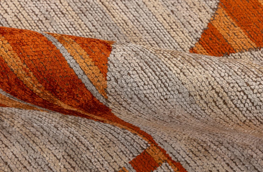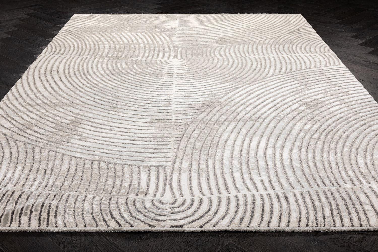 Ковер соткан по дизайну Davide Rockwell, фактурной выстрижки, несколько оттенков шелка создают ощущение движения, ркасивые пепельные оттенки, в наличии в размере 1,54*2,37м, ручная работа.На ковер действует скидка, уточняйте у менеджеров салона.