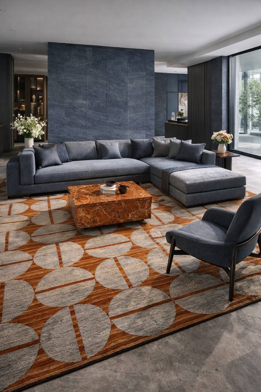 Дизайн с изящным рельефом в геометрическом исполнении создан так, чтобы ловить свет и тени, меняясь в течение дня и добавляя пространству глубину. Лёгкий благородный блеск и износостойкость, а сдержанная серая палитра с тонкими нюансами синего подчёркивает современную эстетику. Толщина ворса 4 мм. Размер 200*290 см
