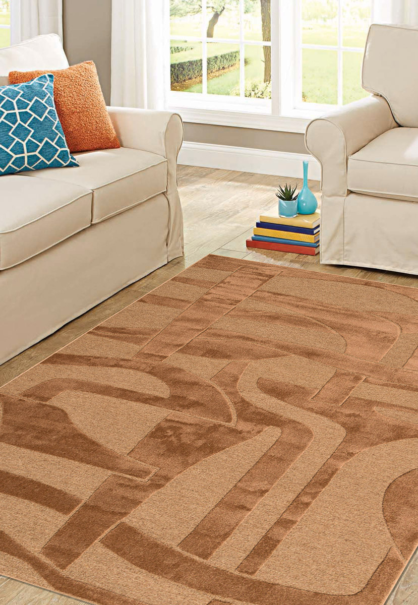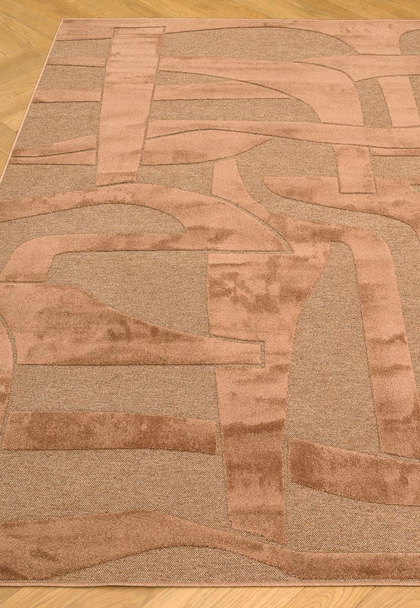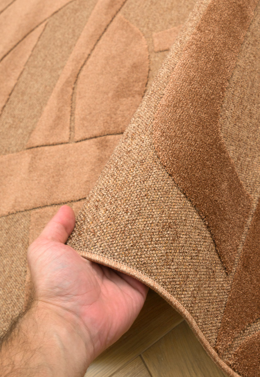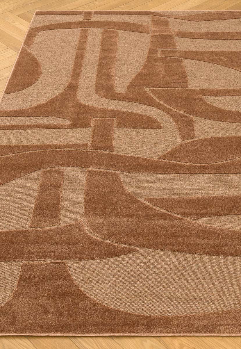 Бельгийская модель из коллекции Norfolk фабрики Ragolle. У него современный рельефный геометрический дизайн в бежево-коричневых оттенках, короткий ворс 6 мм и плотность около 500 000 точек/м², а ворс сделан из 100 % переработанного полиэстера. Размер 160*230 см